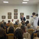 Виставка графіки професора Олега Чуйка “INTERMUNDIA / Між світами” У стінах Івано-Франківської обласної універсальної наукової бібліотеки імені Івана Франка відбулося відкриття виставки графіки професора, художника Олега Чуйка – «INTERMUNDIA / Між світами». Подія зібрала численних художників, колег-викладачів, представників культурного середовища, студентську молодь і шанувальників мистецтва. З вітальним словом до гостей звернулася директорка ІФОУНБ ім. І. Франка Людмила Бабій, підкресливши важливість діалогу між мистецтвом і суспільством, який розгортається у стінах бібліотеки. Модератором заходу виступила професорка, докторка мистецтвознавства Ірина Дундяк, яка окреслила головні етапи творчого шляху митця та звернула увагу на унікальні особливості його графічної мови – тонкої, символічної, багатошарової. Автор поділився своїм баченням проєкту: «Пропонована виставка – це подорож у простір, де межа між реальністю та уявним стає прозорою, а графічний образ виступає провідником у світ сновидінь, пам’яті та внутрішніх візій. Назва Intermundia (з лат. – “між світами”) символізує стан, у якому перебуває художник, створюючи свої твори, та глядач, що занурюється у них». В.о. ректора Карпатського національного університету імені Василя Стефаника професор Ігор Цепенда у своєму виступі звернув увагу на низку тематичних серій митця, зокрема на цикл «Подорож Королівством казок», присвячений постаті Ганса Християна Андерсена. Серія відображає місця, пов’язані з життям і творчістю відомого данського казкаря, та інтегрована в ігрову мапу комп’ютерної гри «Андерсен єднає серця», створеної командою фахівців КНУВС. Зі словами привітання до автора виступили: Директор НН Інституту мистецтв КНУВС, професор Володимир Федорак; Заслужений діяч мистецтв України, професор Богдан Губаль; журналіст, поет, краєзнавець Михайло Батіг; докторка мистецтвознавства, професорка Надія Бабій; художник Михайло Дейнега; бібліотекарка Світлана Олійник; докторка філософських наук, професорка Олександра Качмар; шанувальниця мистецтва Галина Угрина. Репрезентована виставка – це не просто добірка графічних аркушів, а цілісний художній досвід, що відкриває нові виміри бачення, запрошує до роздумів і співпереживання. “Intermundia” – це запрошення не лише дивитися, а й відчувати, мислити та співтворити простір, який народжується між світами.